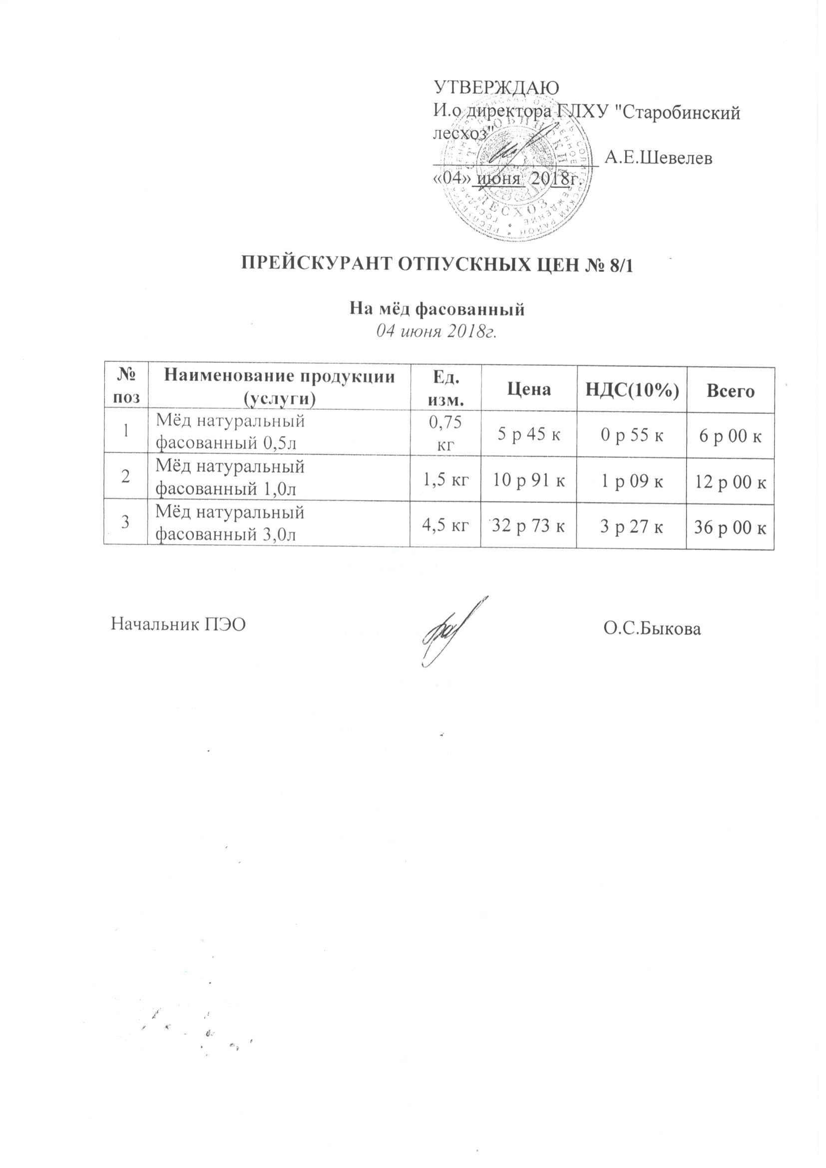 Прейскуранты цен на мед и услуги охотничьего домика: