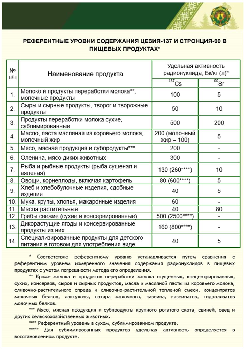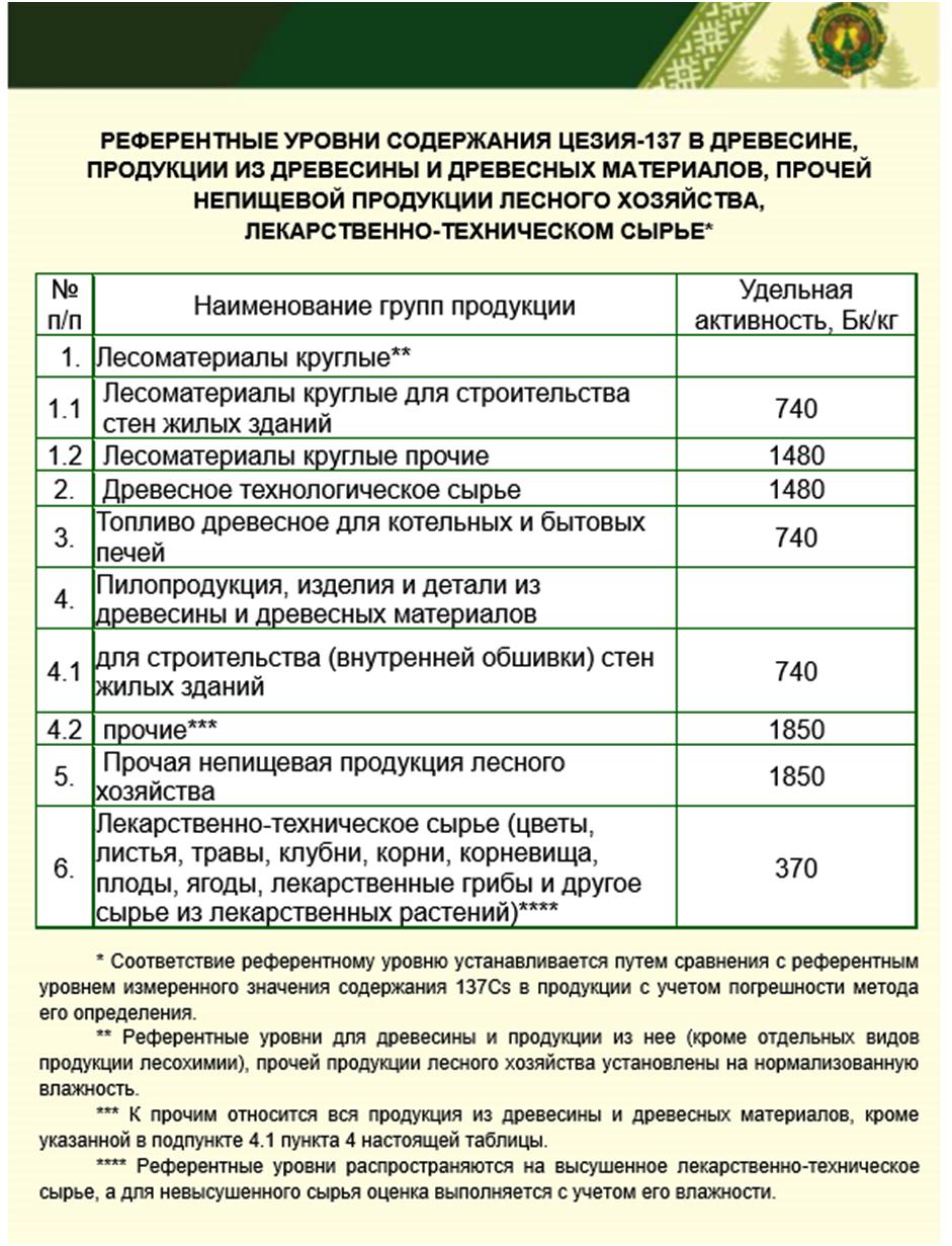 Cодержание Цезия-137 в лесной продукции РЕФЕРЕНТНЫЕ (ДОПУСТИМЫЕ) УРОВНИ СОДЕРЖАНИЯ ЦЕЗИЯ-137 В ЛЕСНОЙ ПРОДУКЦИИ, ПИЩЕВЫХ ПРОДУКТАХ Содержание цезия-137 в древесине на территориях радиоактивного загрязнения лесного фонда Старобинского лесхоза 2023-2025 г.
